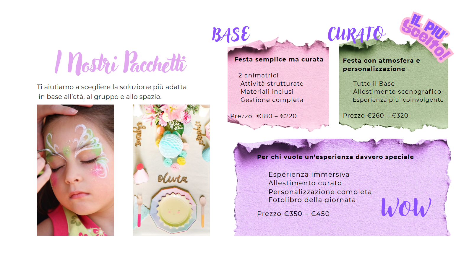 SCEGLI IL PACCHETTO GIUSTO PER LA TUA FESTA.